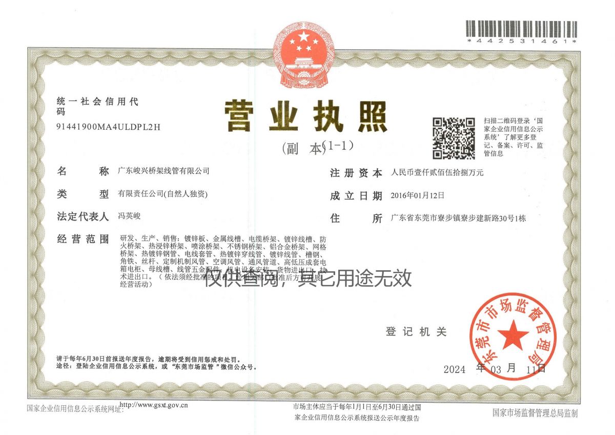 公司名稱:廣東峻興橋架線管有限公司